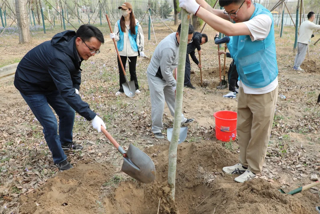 活动现场,大家分工协作、相互配合,挥锹铲土、扶苗填土、提桶浇水……一道道工序紧密衔接,植树现场呈现出一派热火朝天的景象。经过一番忙碌,一棵棵新植苗木“亭亭而立”,生机盎然。北京活动现场还通过绿色健步走活动来宣传低碳环保理念,传递文明绿色的生活方式。