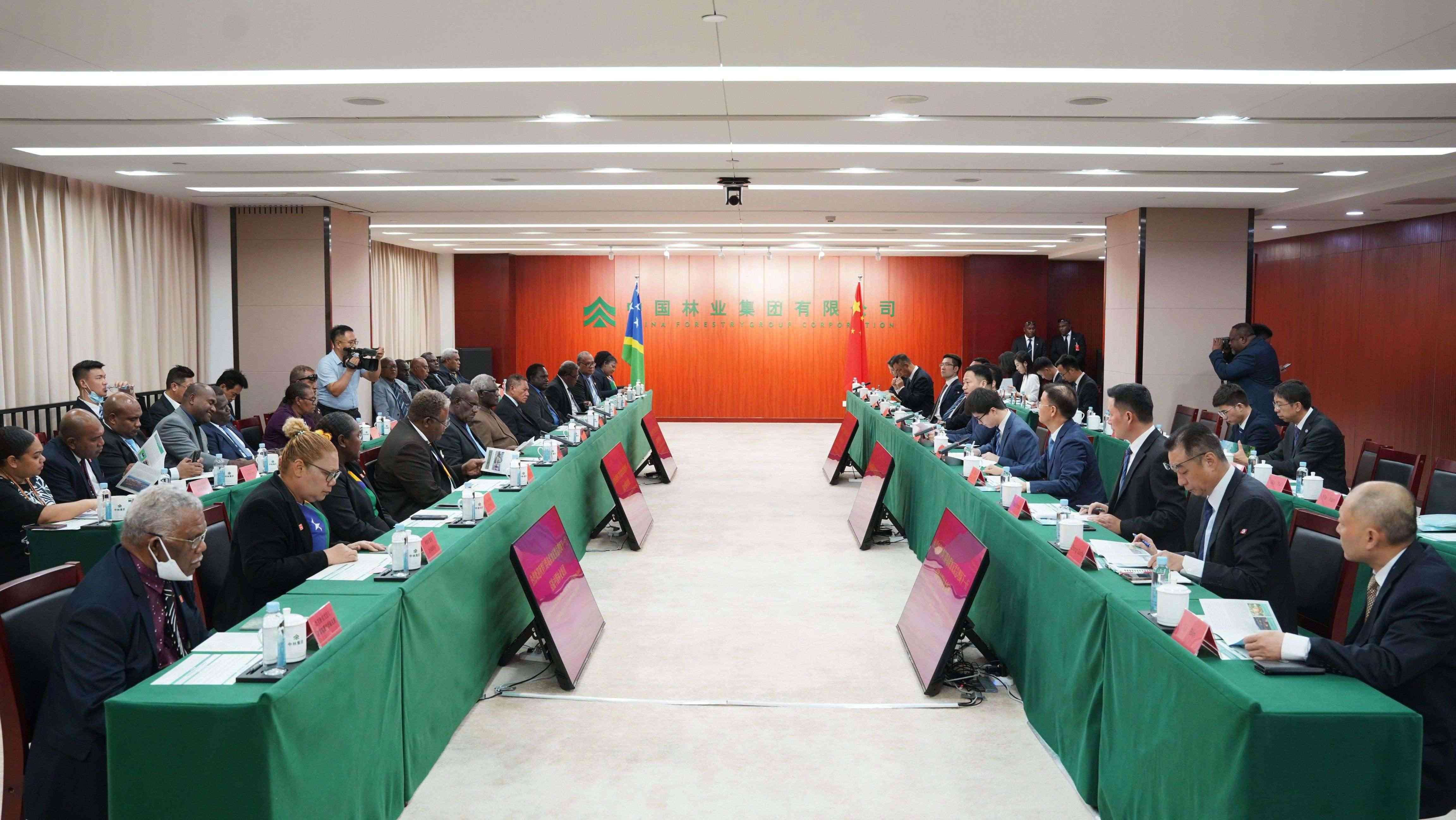 中国林业集团办公室、科技管理部、中国林产品集团、中国林木种子集团相关负责人;所罗门群岛相关部门负责人参加座谈。