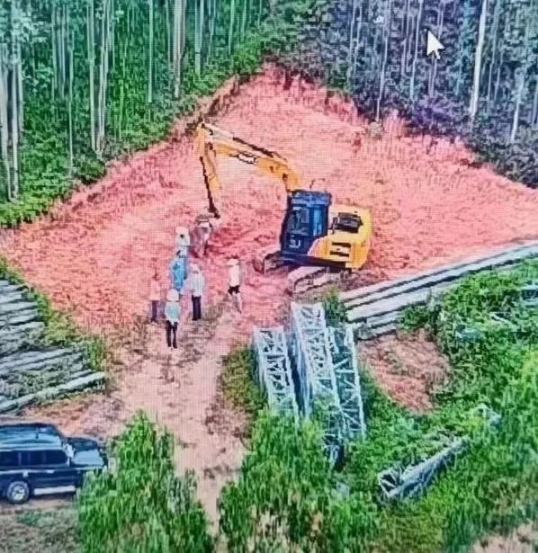 2022年8月13日,廉江林场分公司监控室人员发现有钩机非法占用林地。工作人员迅速将发现情况上报上级领导,并第一时间组织人员前往现场进行制止。