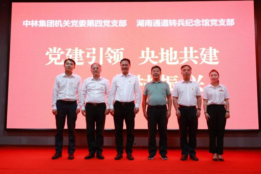 集团机关党委和通道县会商制定《“党建引领,央地共建,助力乡村振兴”党支部结对共建活动实施方案》,集团机关党委第四党支部与通道县转兵纪念馆党支部结对共建,与脱贫村万佛山镇所里村党支部结对共建,形成“中林+通道”基层党建平台。