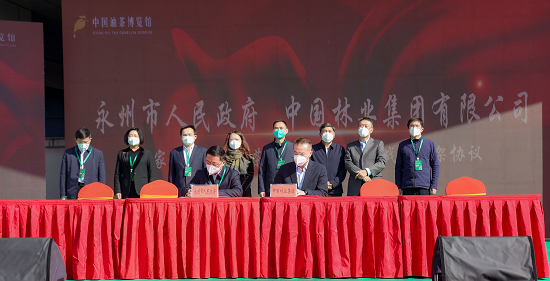12月21日上午,中国油茶博览馆开馆暨林投项目签约仪式和中华茶油美食街开街仪式在祁阳市举行。中林集团与永州市人民政府签署战略合作协议。中林集团党委委员、副总经理朱成庆出席签约并致辞。永州市委书记朱洪武、湖南省林业局党组书记、局长胡长清出席签约仪式,国家开发银行湖南省分行党委书记、行长宋征,永州市委副书记、统战部部长单铸飞分别致辞。