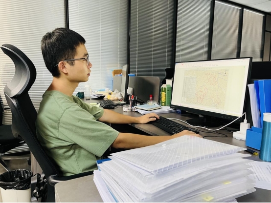 “百日攻坚”,数个项目并行推进,他担负起了项目对接、外业内业、审核上报等工作,连续几个小时加班,趴在电脑前处理繁杂的数据。