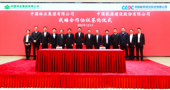 1月4日,中国林业集团有限公司与中国能源建设集团有限公司在京签署战略合作协议。中林集团党委书记、董事长余红辉,中国能建党委书记、董事长宋海良出席并见证签约。中林集团党委委员、副总经理黄其正,中国能建党