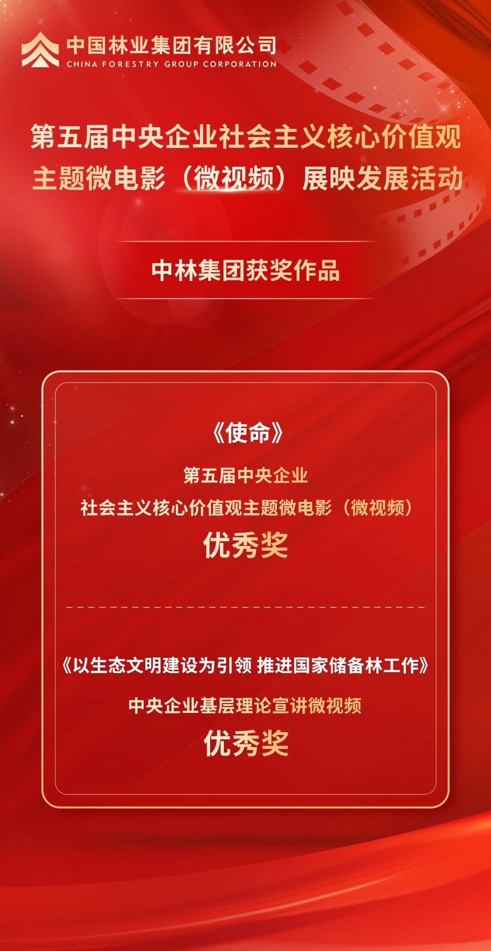 中林集团两部作品荣获第五届中央企业社会主义核心价值观主题微电影(微视频)优秀奖!