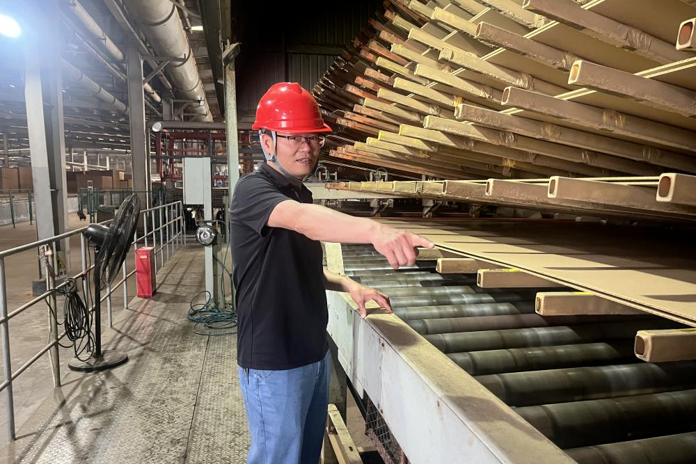 许梅芳多年深耕生产一线,始终将提升产品质量与生产效率作为核心工作方向。他从原料到成品狠抓全过程细节管控,产品合格率与优等品率常年保持在98.5%以上。针对长期实践中发现的能源消耗大、生产效率有待提升等问题,带领团队实施风机变频改造、建设板坯预加热系统等多项技术改造,研发无醛板、A级阻燃板等新品,以技术创新实现降本增效,用实干践行“质量立厂”和“与时俱进”要求。