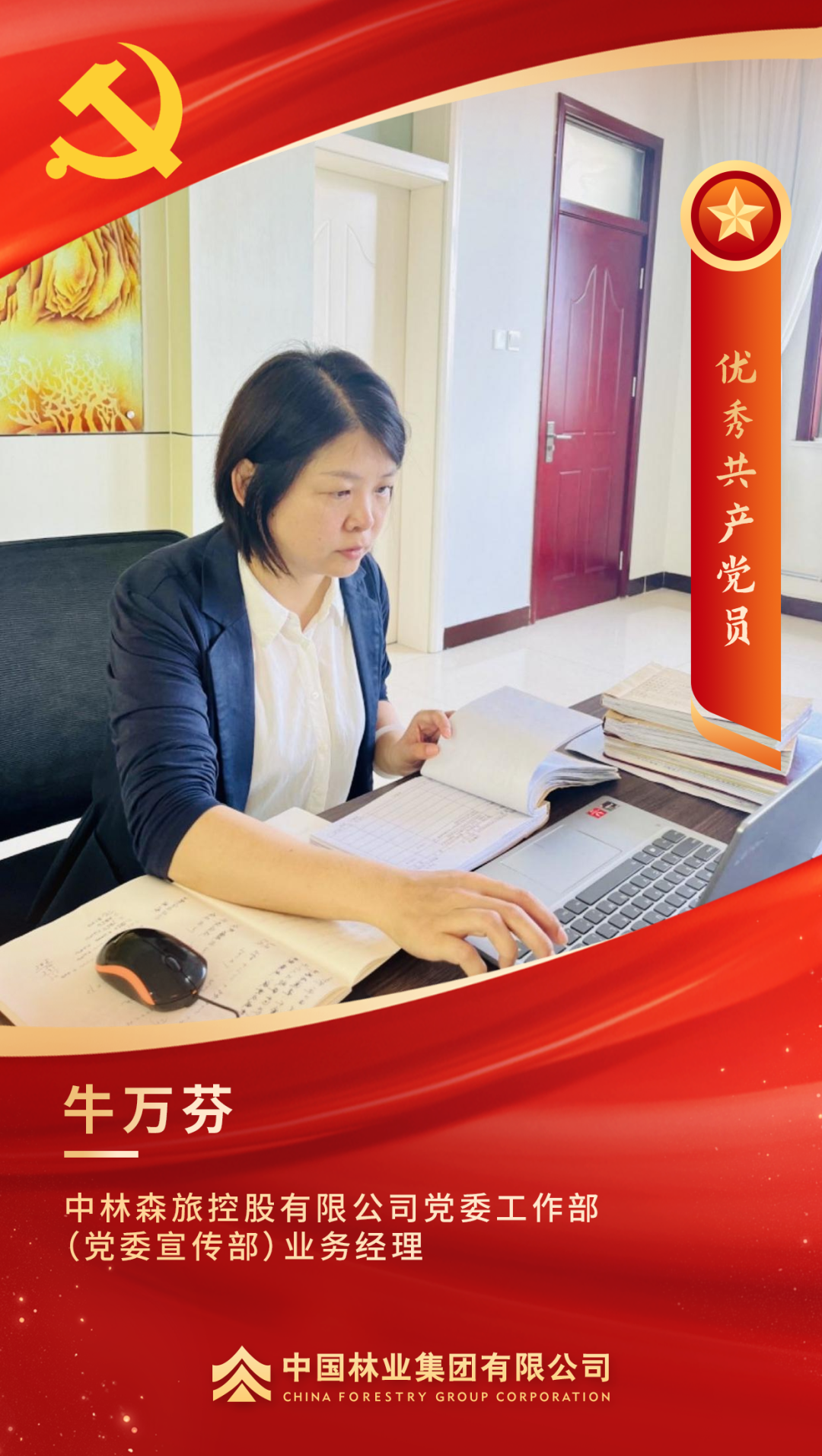 荣获集团党委“优秀党务工作者”的称号,我内心充满喜悦,也满怀感恩之情。守林护林工作不仅仅是植树造林、防火防虫那么简单,它更是一份沉甸甸的生态责任和社会担当。作为党员干部,我要将“绿水青山就是金山银山”的理念深植于心、外化于行,让党旗在林场这片绿色林海高高飘扬,引领生态保护和企业可持续发展。