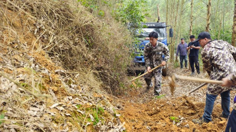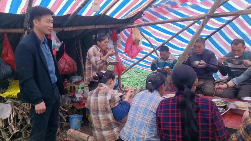 经过了一天的忙碌,李健国与林农们“就地开饭”