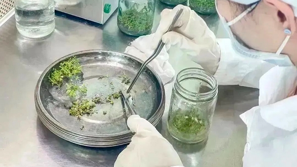 选择外植体➜消毒外植体➜配制培养基➜培养接种➜继代增殖➜培养生根瓶苗