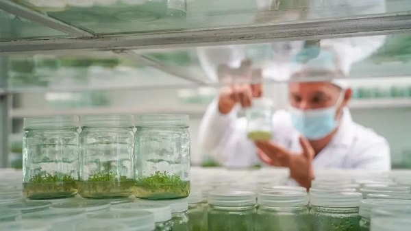 在中林雷林公司属下林业科学研究分公司研发中心无菌室的组培瓶内,一簇簇幼苗吐着嫩绿的芽儿;无菌室外的苗圃基地里,一畦畦红红绿绿的树苗舒展着枝叶,接受着阳光雨露的洗礼……