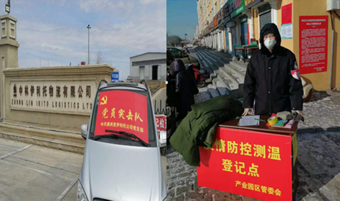 2020年新冠肺炎疫情期间,满洲里伊利托物流有限公司按照林场公司党委安排,坚持疫情防控和复工复产工作两不误,公司上下同心联动,众志成城。党员就是一面旗帜,支部就是一座堡垒。公司党支部组建了党员突击队,支部书记闫士明带头冲在防控一线,主动申请加入了满洲里园区防控疫情党员突击队,在气温零下二十几度交通不便的情况下,每天坚持按时到岗值班。党员突击队对进出场区人员、车辆进行登记、体温检测,通过健康码监控进出人员近期行踪,加强对外来人员的排查与管理,精准防控,做好对重点关注地区人员的监督和管控,并将每天防疫情况上报至满洲里新冠肺炎疫情防控指挥部,保证信息畅、准、快,为公司安全生产经营提供有力的保障。疫情期间,在党员干部的引领下,公司组织捐款共计53200元。