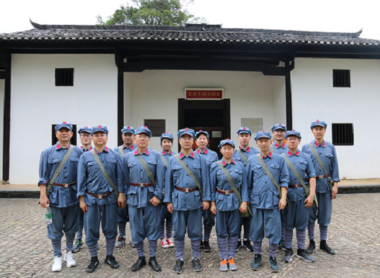为了深入学习和贯彻党的十九大精神,深刻领会习近平总书记新时代中国特色社会主义思想,扎实开展“不忘初心,牢记使命”主题党日活动。2018年7月4日,由公司第三党支部书记王敏同志带队,组织部分党员和入党积极分子赴井冈山红色革命圣地开展红色教育活动。 7月5日,党员们换上红军服,首先来到井冈山革命烈士陵园敬献花圈,吊唁革命先烈。随后,由支部书记带领全体党员重温入党誓词。