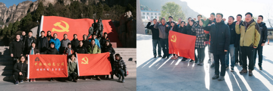在狼牙山五壮士纪念馆前,公司党委书记、总经理李留彬带领党员们共同宣誓,重温入党誓词,坚定党性。
